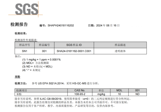 Sustainable development has always been a goal pursued by Deltachem, and green chemistry is the direction we are striving towards. The OMNISTAB® new generation of phenol-free antioxidants has emerged to meet this need. This series of phenol-free antioxidants not only exhibits excellent thermal stability and low volatility but also contains no residual free phenols (such as phenol, nonylphenol, or bisphenol A), making it more environmentally friendly. It helps enterprises achieve truly phenol-free and eco-friendly high-end materials. The product has passed SGS testing for phenol residue.